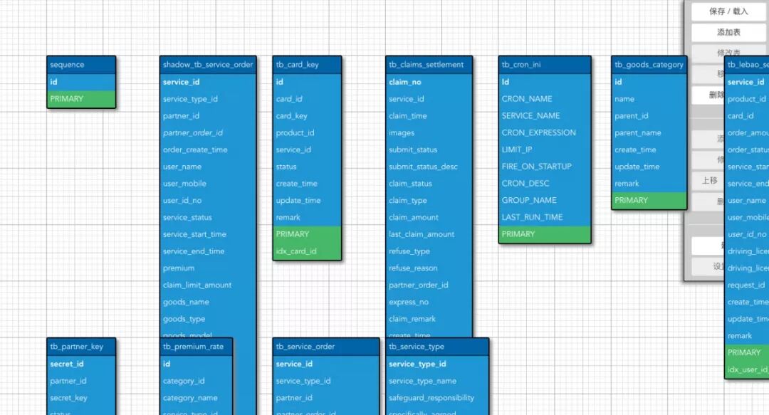 例如需要开发一款保险类的新产品,可以直接将原先的线上保险数据库中的表结构导出