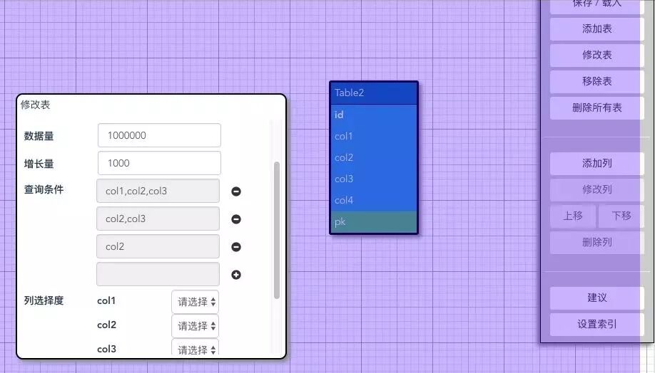 查询条件中出现的列需要选择列区分度,选项为唯一、高、中、低,我们全部选为中,确定后点击建议,即可生成索引