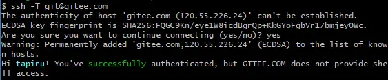 输入ssh -T git@gitee.com之后,得到这样的提示: