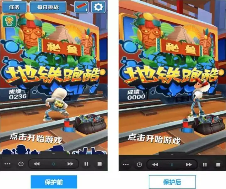 上图以动态保护中的反加速为例。利用变速器,破解者可以轻松修改游戏的运行速度。但是经过加固保护后,变速器的功能无法再发挥作用,游戏的速度也就不受变速器控制了。