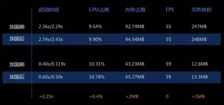 3.易盾加固前后产品的性能对比