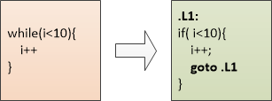 汇编老头儿看到C小伙儿懂了, 问道:“你想想你的while 循环,for 循环,是不是if 和 goto 的包装而已?”