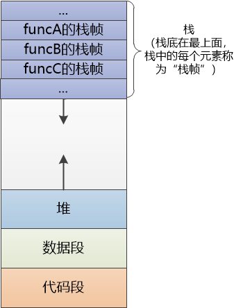 代码段的指令不断被CPU阿甘执行,遇到函数调用,就建立新的栈帧,函数调用结束,栈帧就会销毁,废弃。然后返回上一个栈帧。
