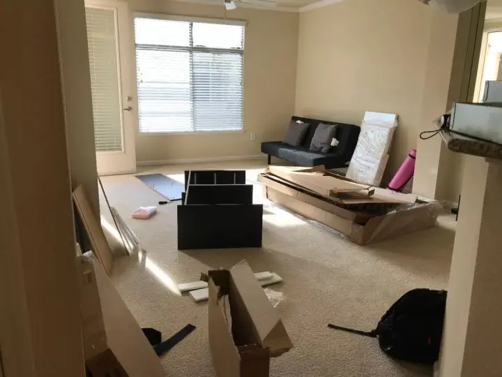 公寓住进去都是空的,大家搬家都将家具打包带着走。附搬进去前后的照片,从宜家买的家具自己动手装:
