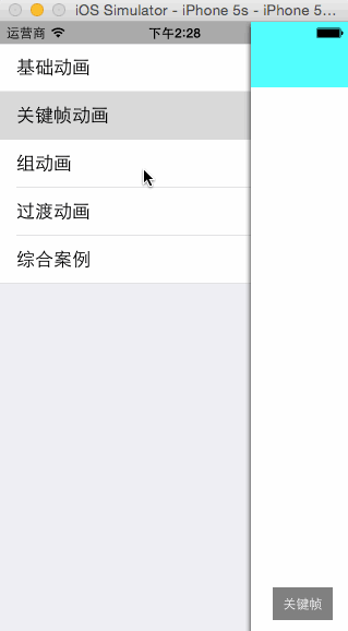 说明:CABasicAnimation可看做是最多只有2个关键帧的CAKeyframeAnimation