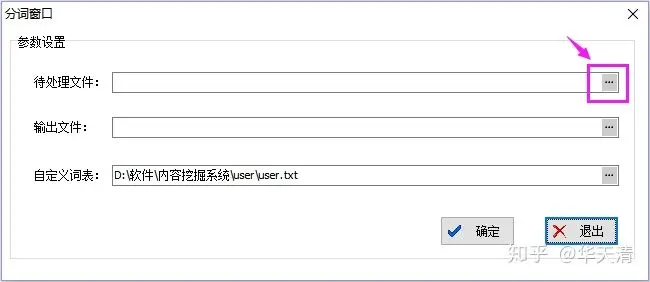 选择“功能性分析” > "分词”,将刚刚准备的txt文档导入后点击“确定”。