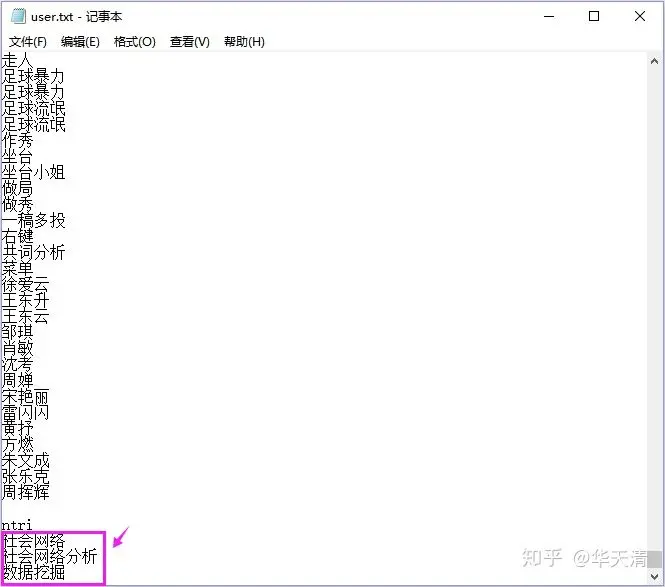 首先,我们先通过ROST来自定义词组,要补充ROST的“词库”,找到“user”文件夹下的“user.txt”文档,将要补充的词在后面补充即可。