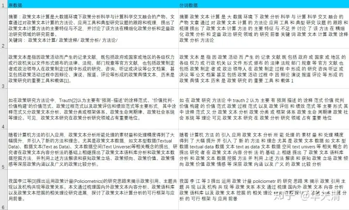 - 分词效果表:一行原始内容对应一行经过分词的内容