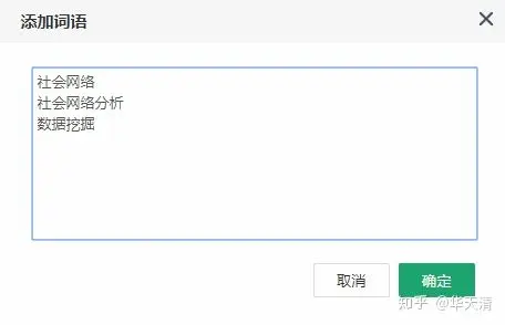 这里我补充了“社会网络”、“社会网络分析”、“数据挖掘”这三个词语。