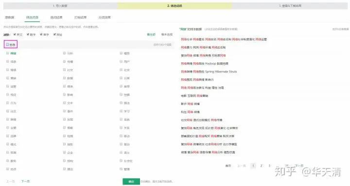 集搜客分词打标工具的特色从第二个网页“筛选词语”开始,我们知道,在一篇文章中,可能大量的高频词是没有分析价值的,那么集搜客分词打标工具允许用户手工筛选词语,只保留研究课题相关的词。筛选词是按照词频排序的,因为词语的频率越小,它其实分析的价值可能越小(不总是正确,按照流行的搜索算法,少见的词含有的信息量可能更大),而词频排在TOP前面的才是用户需要分析的对象,所以把前面筛选完以后,后面的可以不用看了。
