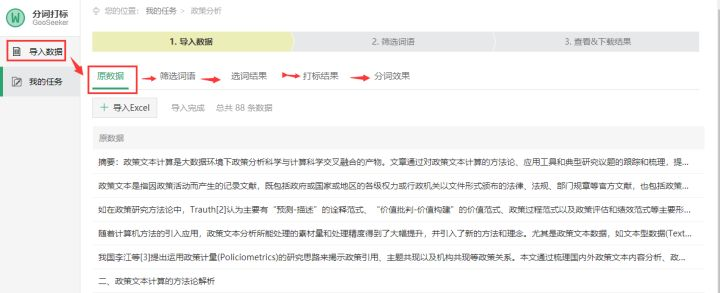 - 打标结果表:如果筛选了词语,就有这种表,把每条原始内容含有的词语罗列出来