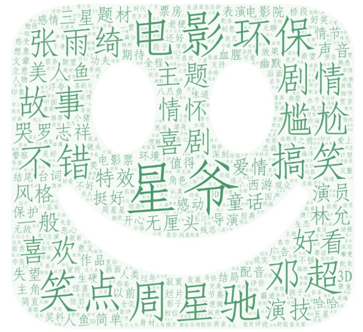 从上面的词云图可以看到,大家讨论最热烈的话题就是星爷,可以说大家去看这部电影大多数是冲着周星驰去的,都说欠星爷一张电影票,还有很大一部分,把《美人鱼》和周星驰近两年来的电影做了对比,比如西游、长江七号,评价好坏参半,无论怎样,大家最后都给了星爷一张电影票的支持,说明个人影响力和号召力对票房的贡献真的可以很大;