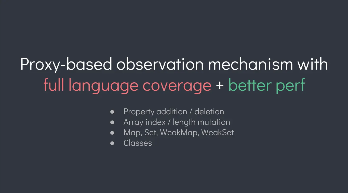基于 Proxy 观察者机制并满足 full language coverage 及更好的性能