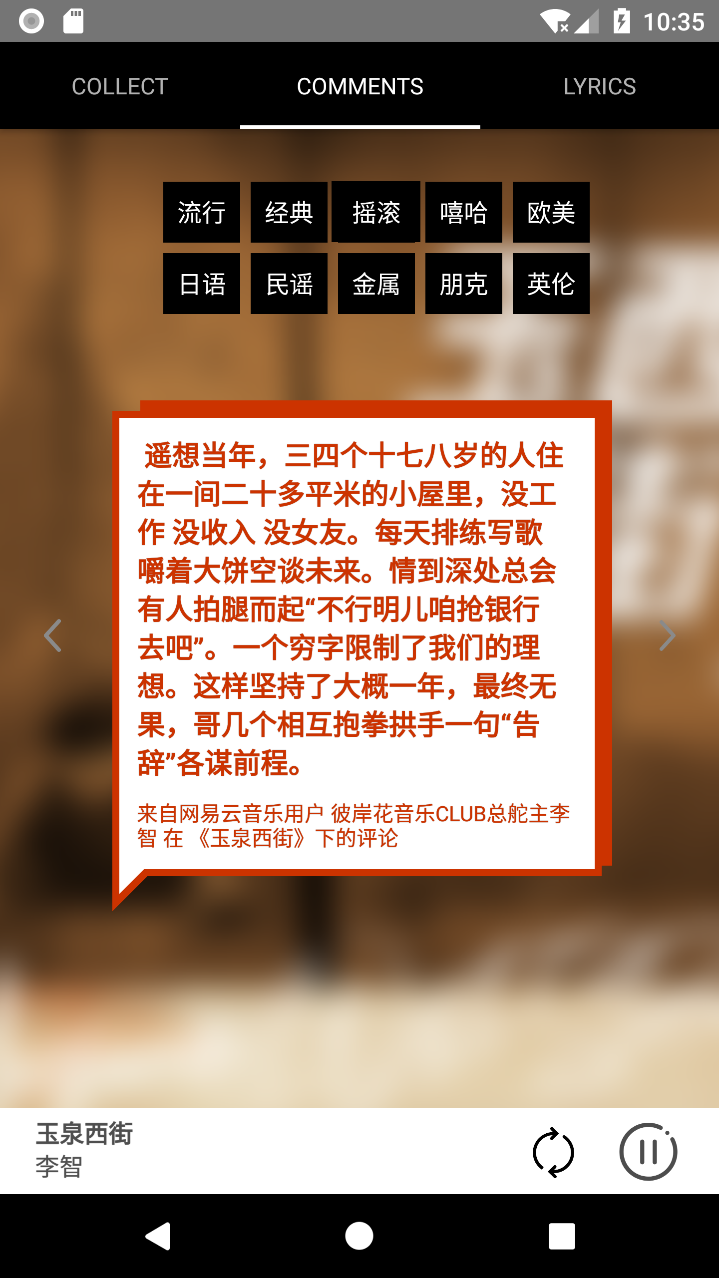- 选择歌单:流行、摇滚、民谣等10大热门分类