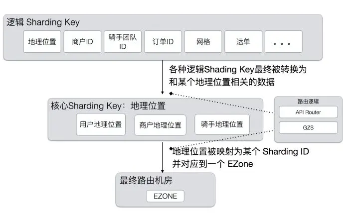 - 计算型:比如经纬度。GZS根据地理位围栏计算出所属的shardid,来找到目标ezone。这种类型的shardingkey会有一定的cpu消耗。