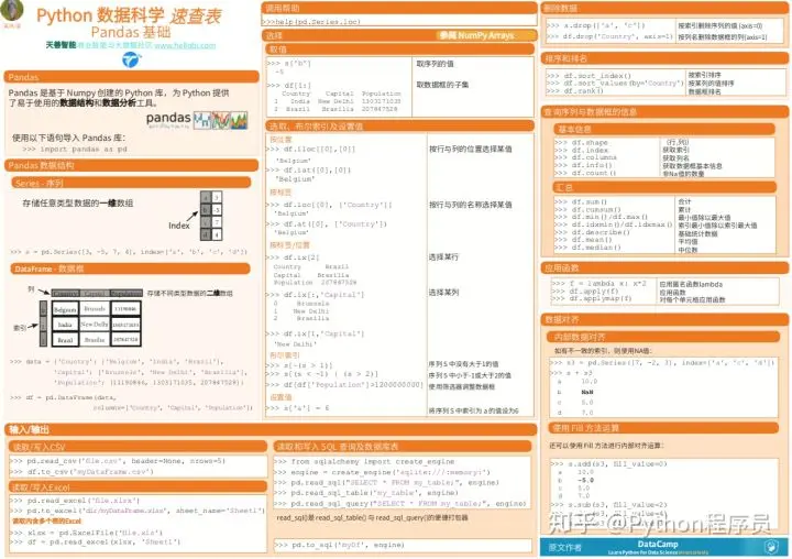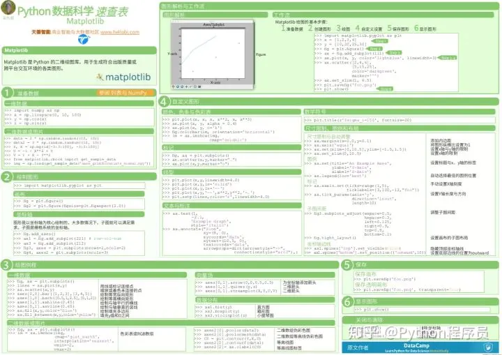 中文版高清PDF下载: 关注 Python爱好者社区(微信ID:Python_shequ) 公众号,后台回复“速查表” 即可下载全部10张 Python数据科学速查表。