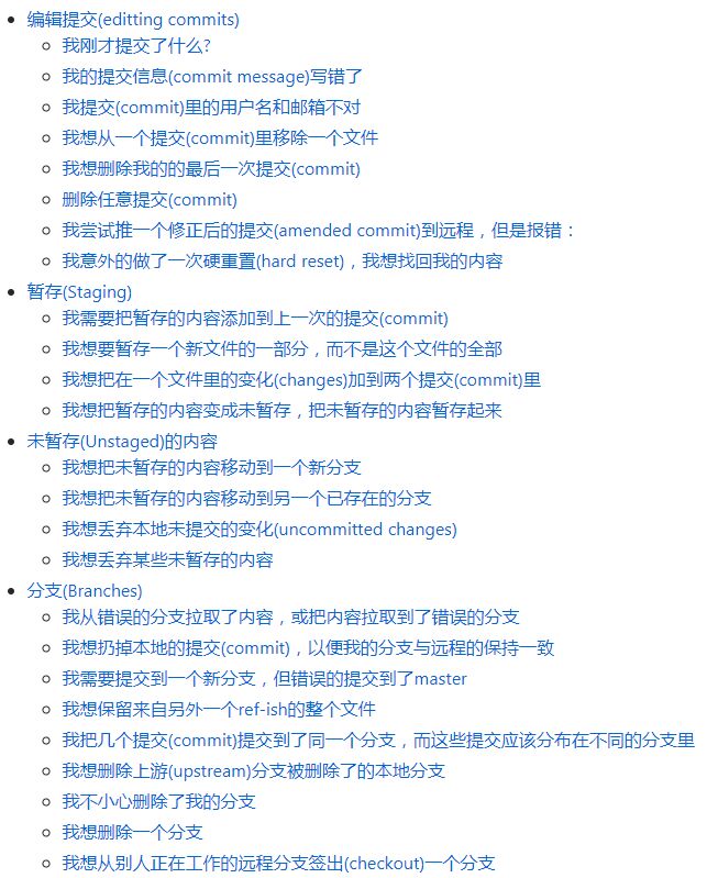 这个项目就是「git-flight-rules」,翻译过来是飞行规则的意思,它记录的是使用 Git 过程中,某个场景、错误或者冲突发生的原因,以及怎样一步一步的进行处理。