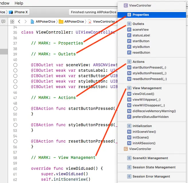 - Resetting: ARSession.run(_:options:)可以重置session. 当session状态改变时,可以在代理方法中处理: