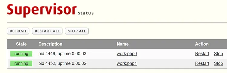 work:1 RUNNING pid 31318, uptime 0:00:06
