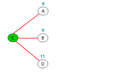 更新顶点 C 至任一节点的距离: