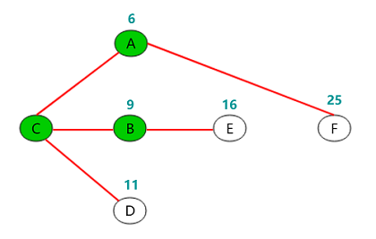 - D = {6, 9, 0, 11, 16, 25, INF, INF}