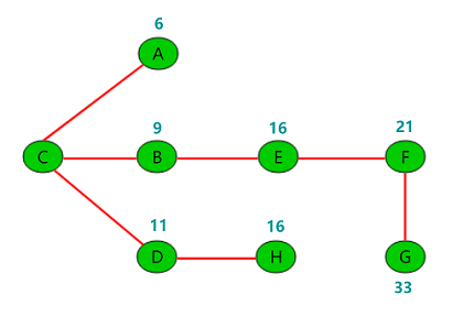 因此,CG 的最短距离为 33,最短路径为 C-B-E-F-G。