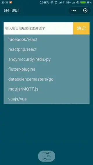 - 复制github项目链接进入小程序,可直接打开项目;也可以搜索