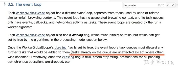 1.由于webworker也是基于eventloop,所以,在worker中执行方法时,无法通过主线程的worker.terminate()终止此worker,仅能等待当前任务执行完毕后才能终止。