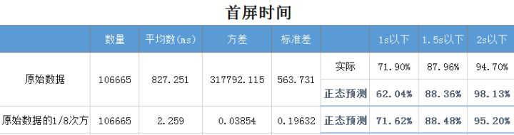 通过与实际数据对比,可以看到,未做数据转换时,对1s以下、2s以下用户占比的预测相对误差较大,而转换后的预测结果已经与实际数据非常接近了。