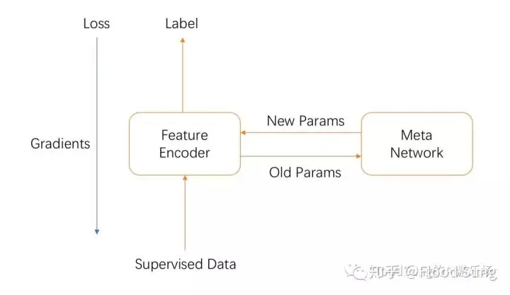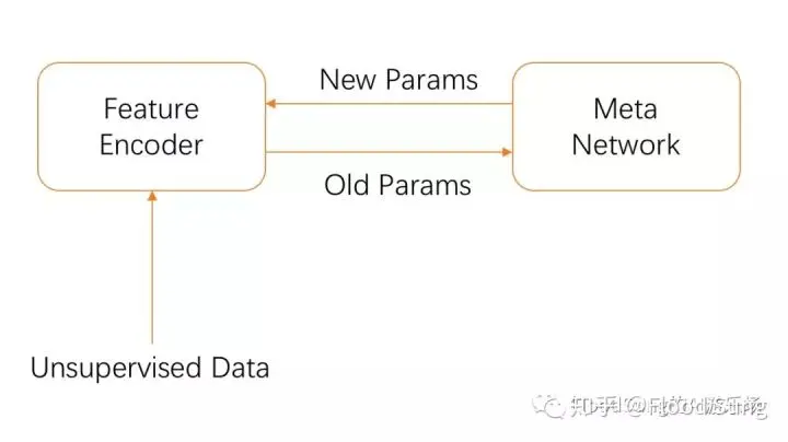这篇文章采用的是生成参数的方法,也就是本来如果是有监督学习,我们通过Loss可以通过反向传播得到梯度进行更新,现在我们没有了Loss,我们就自己额外构造一个神经网络利用当前的参数来直接预测要更新的参数: