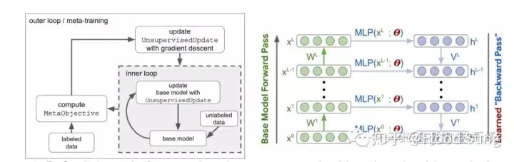 按照上图,我们可以认为这个Meta Network学习到了Unsupervised Learning rule。输入一些无监督数据,我们就可以来更新神经网络。更新完之后我们再用Few-Shot Learning监督学习来更新整个网络包括Meta Network:
