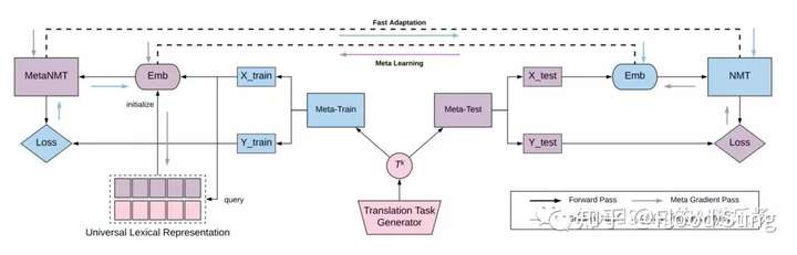 在之前的博文中我说过,任何现有问题加上Few-Shot或者Fast Adaptation都可以直接变成Meta Learning问题,那么自然就可以用Meta Learning的方法加以处理。所以,这篇paper针对的是Neural Machine Translation神经机器翻译,可能还是叫文本翻译比较直接吧。那么就加个少样本呗,就变成了Low-Resource Neural Machine Translation。
