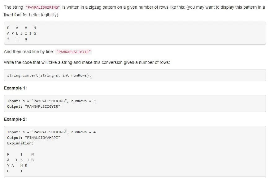 就是给定一个字符串,然后按写竖着的 「z」的方式排列字符,就是下边的样子。