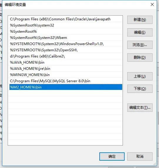 - 在环境变量Path中,加入%M2_HOME%\bin