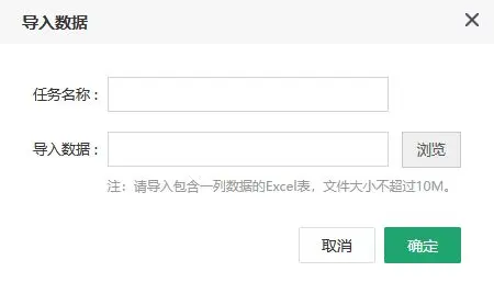 填写任务名称后导入包含一列数据的excel表,文件不要超过10M。