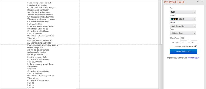 将你要制作词云的文本复制进ppt,这里我将On a Slow Boat to China 歌词复制进去实验。