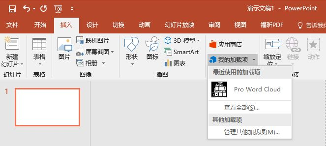 1,在ppt应用商店中加载一个插件Pro Word Cloud