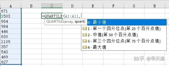 array :为需要求得四分位数值的数组或数字型单元格区域