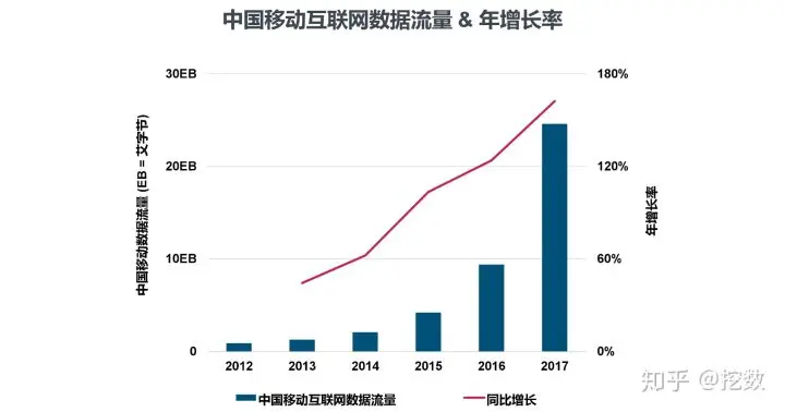 但是流量的增长率在上升,主要是移动视频的流行带来的流量消费大量增长。