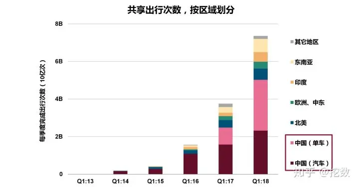 - 中国共享出行次数领先全球,同时单车领先汽车