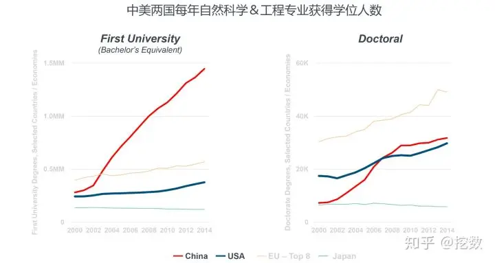 中国工科人才无论是人数还是增速都碾压美国和欧洲。