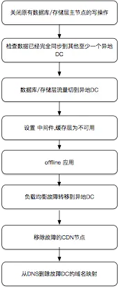 看完每层的情况,再来看全局,当一个DC发生故障时,如何在保证数据完整的情况下,故障转移了。发生故障不可怕,怕的是丢数据,数据错乱。所有的策略都是围绕数据的完整和正确性。全局设计也是一样,因此我认为较为合理故障处理策略应当按照下面的步骤来:
