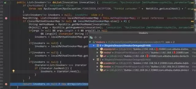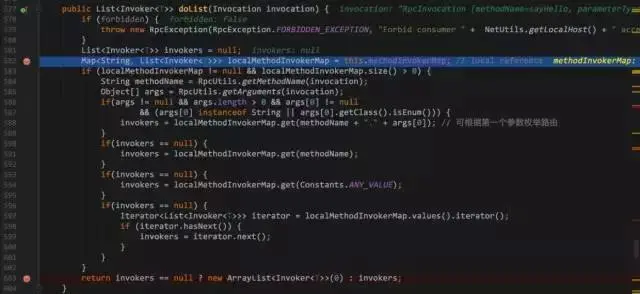 这个methodInvokerMap也比较重要,后面的文章会讲一下这个,但是我们这部分代码就可以从出,他是要从methodInvokerMap中取出invokers如图所示:
