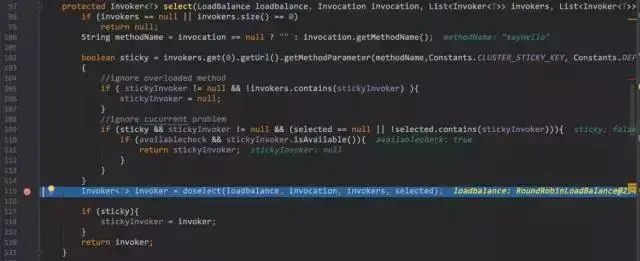 下面就要开始第三个关键词浮出水面,也就是LoadBalance(负载均衡),此时的位置是序号11,仔细留心源码的注释,其实这里可以出一个面试题,比如: