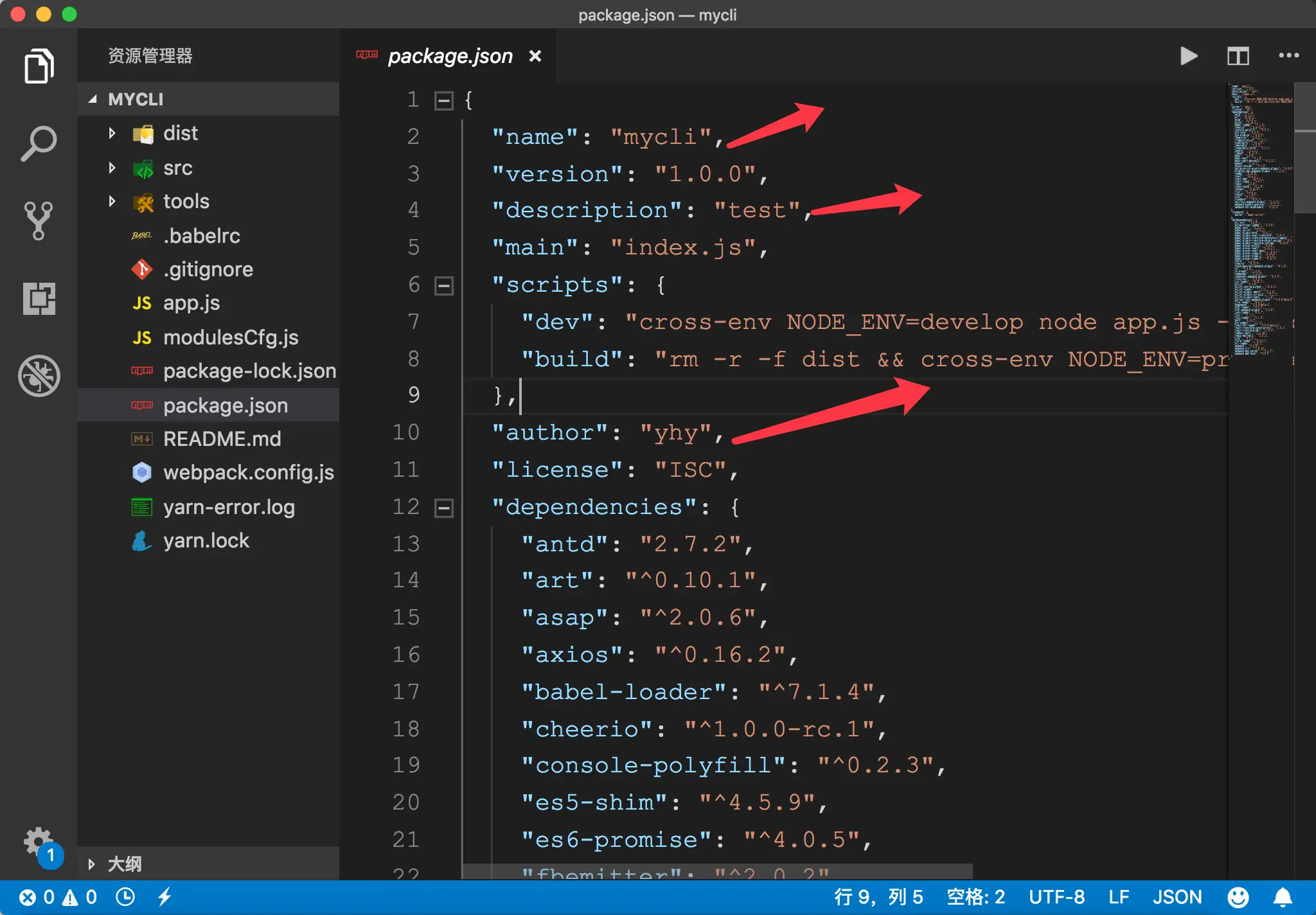 可以直接负责,也可以 npm init 。但是其中 bin 语句必不可少下面会讲解到