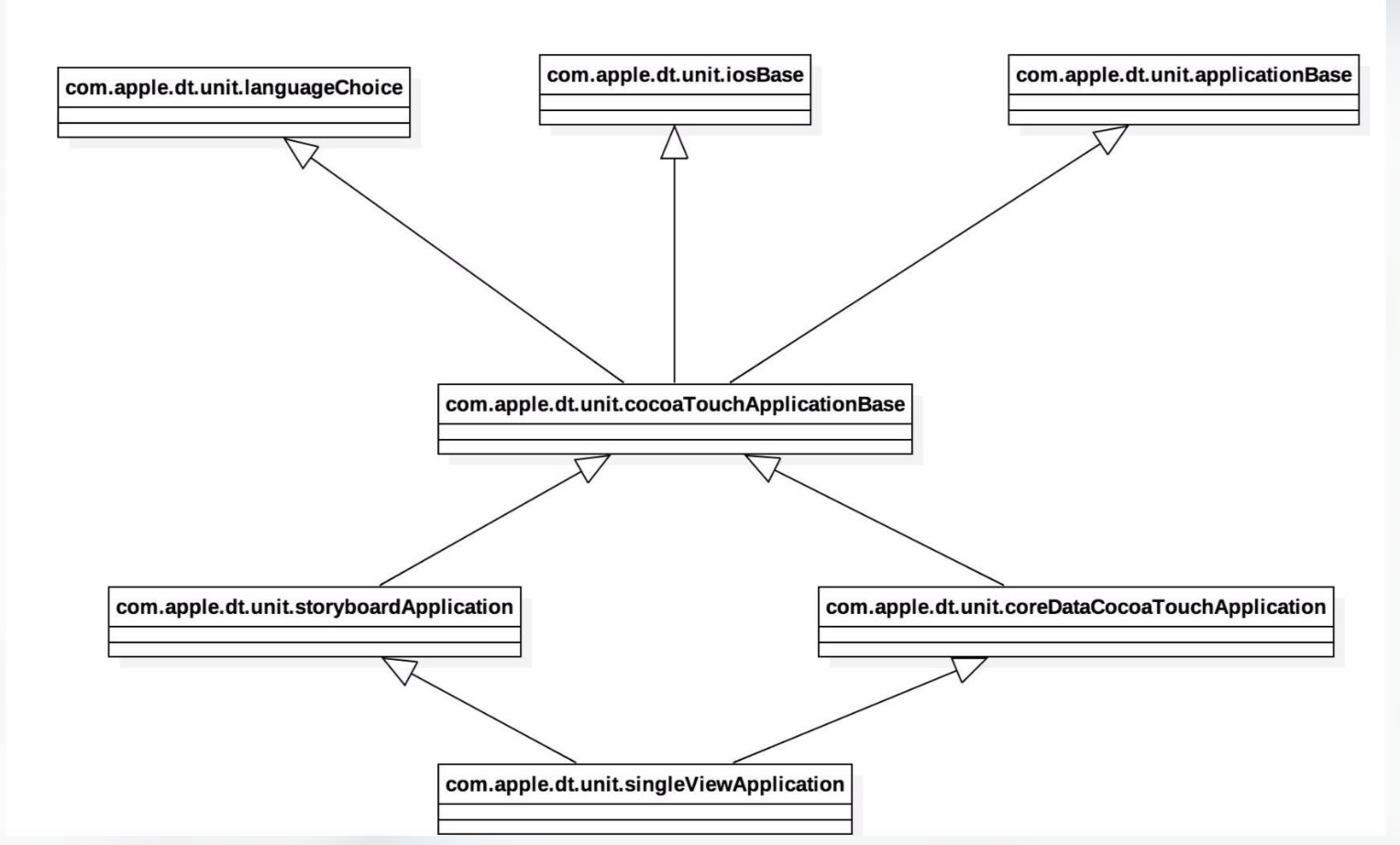 Xcode模板是支持继承的,或者叫做Import,这里Ancestors字段以数组的方式列出了要继承的对象,上面只继承com.apple.dt.unit.cocoaTouchApplicationBase,这个是和Xcode6一起的Empty工程类似的。 而Signal View工程则继承了com.apple.dt.unit.storyboardApplication"和com.apple.dt.unit.coreDataCocoaTouchApplication.而com.apple.dt.unit.storyboardApplication又是继承了上面的com.apple.dt.unit.cocoaTouchApplicationBase。 具体其定义了什么,可以对比着看下,在系统的工程模板位置,比如“Main.storyboard”是如何别加入工程的。
