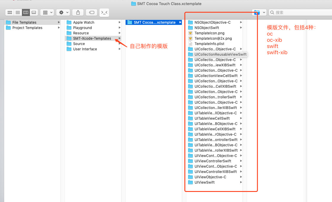 这里是我创建的两个模版,这个文件在你安装的Xcode里面,路径是: