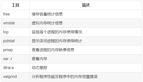 free,vmstat,top,pidstat,pmap只能统计内存信息以及进程的内存使用情况。