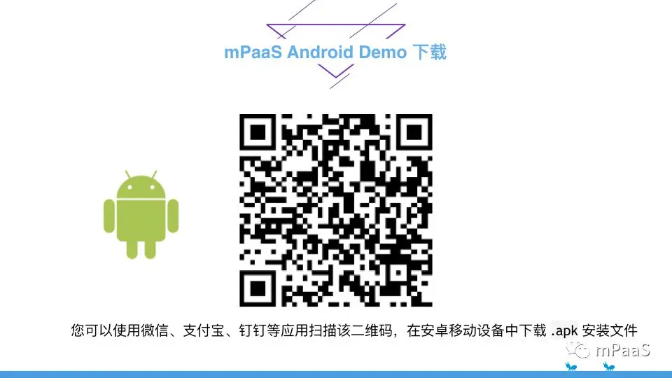 总结下来,蚂蚁金服 mPaaS 中就是通过「Nebula H5容器 + 离线包 + 小程序 + MDS」这样的方式来实现移动端的动态化方案。想要上手体验看看吗?欢迎下载 Android Demo: