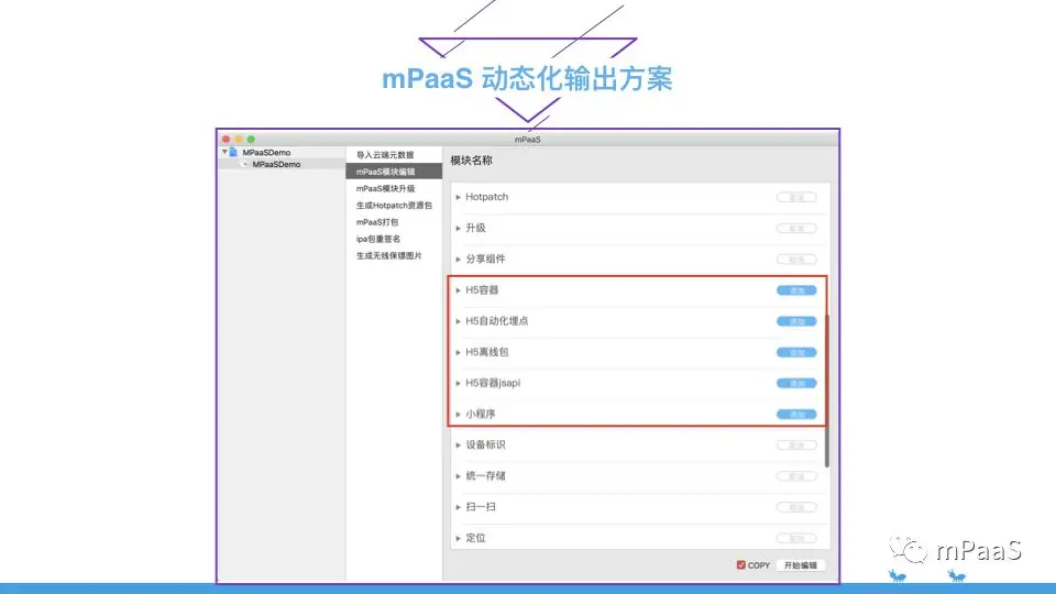 同时 mPaaS 提供的小程序模块,允许用户把运行在支付宝上的小程序,无缝的迁移到自己的 App 中,做到【跨平台跨应用】开发,提高代码的复用能力Nebula 组件化输出,配合 mPaaS 提供的 MDS (移动发布服务) 来实现动态更新。